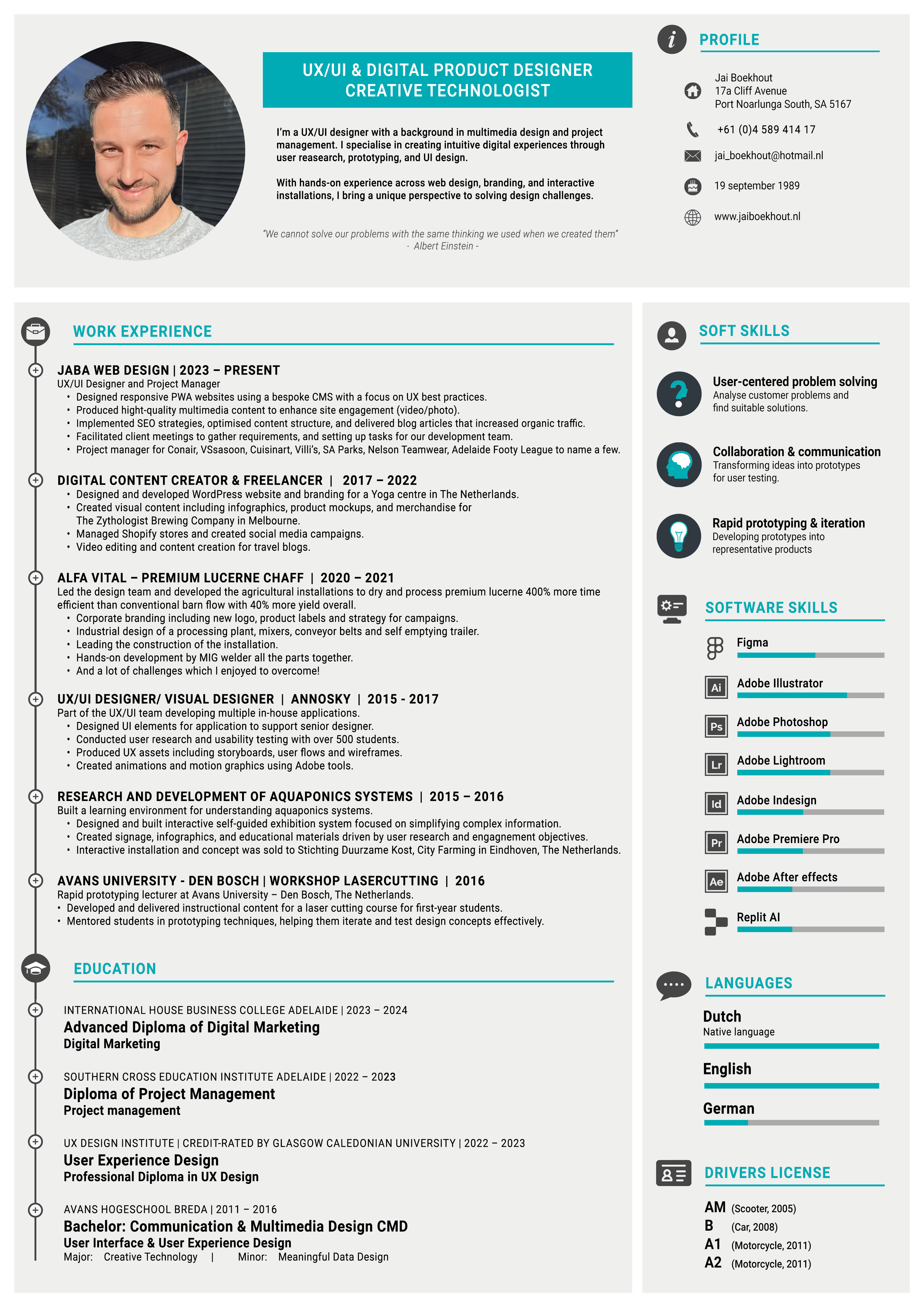 Hi, I’m Jai Boekhout a Dutch UX/UI designer and creative technologist, now based in Australia since 2019. I specialise in designing intuitive, user-focused digital experiences that combine clear functionality with engaging visuals.