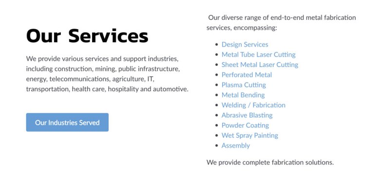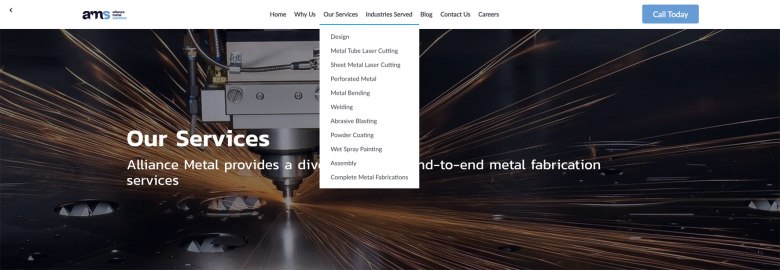 - Industries Served Section: Developed a navigation feature that allows users to explore services tailored to specific industries, showcasing Alliance Metal’s versatility.