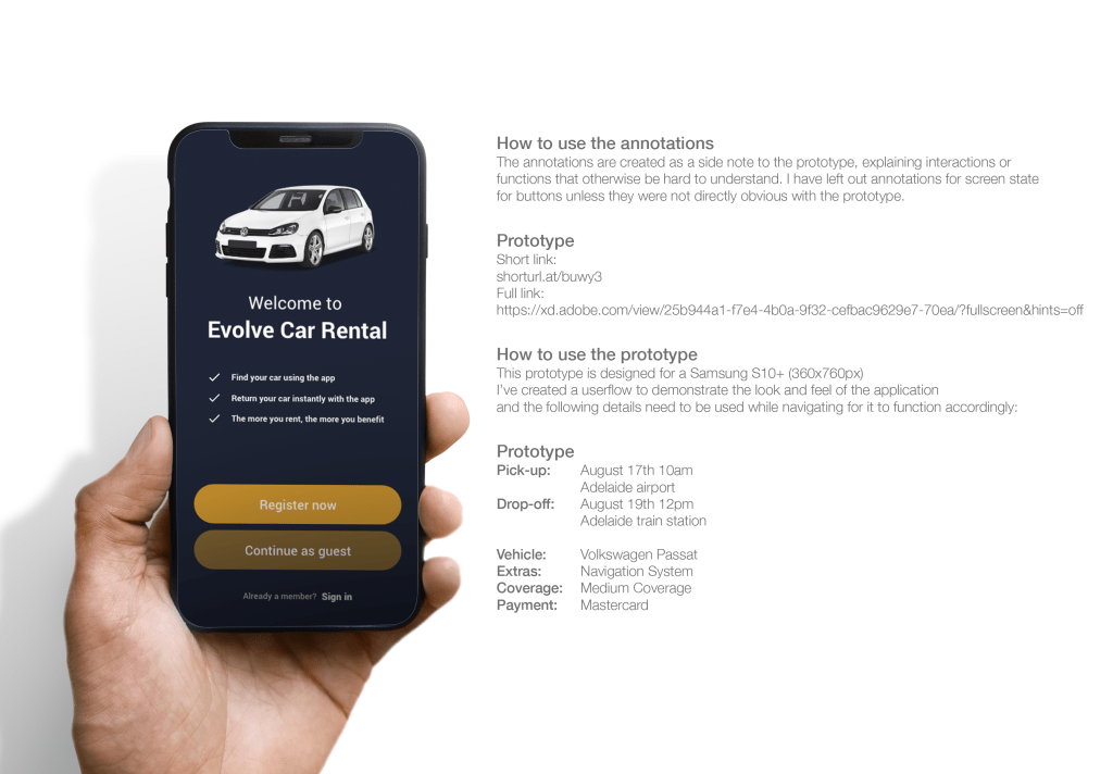 UX/UI Project – Evolve Car Rental prototype